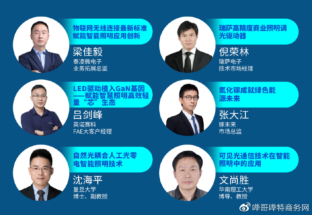 以下是AIoT&智能照明与大功率驱动电源分论坛研讨会的六位重磅演讲嘉宾阵容。