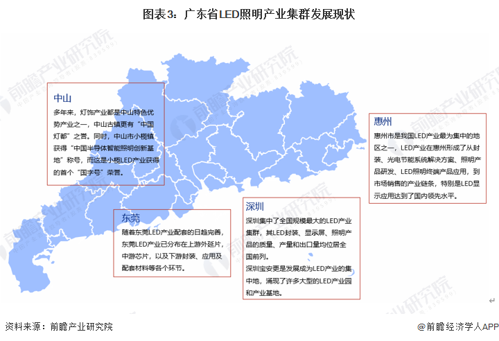 作为中国LED大省,广东LED产业围绕深圳延伸到东莞,中山,惠州等地区,产业服务链向周边辐射的四大产业集群,对广东LED的发展做出了极大的贡献,在这些城市,LED产业集群多,汇聚众多产业园、LED龙头上市企业,此外,许多外省LED企业都争相在深圳建设办事处。