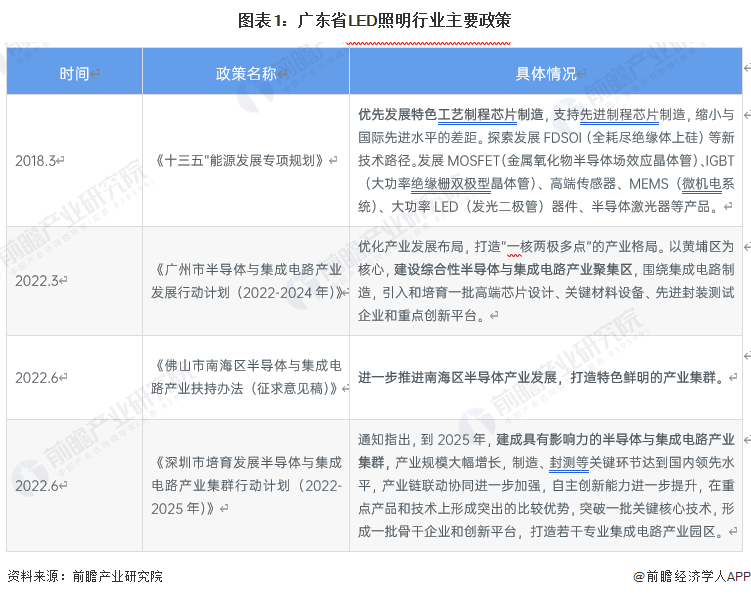 广东省出台了许多政策一直吃LED照明产业的发展,2022年6月,佛山市出台《佛山市南海区半导体与集成电路产业扶持办法(征求意见稿)》,其中提到要进一步推进南海区半导体产业发展,打造特色鲜明的产业集群。
