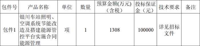 12月19日,银川车站照明、空调系统节能改造及搭建能源管控平台实施合同能源管理项目二次采购公告发布,预算金额1308万元,本项目接受联合体报价。
